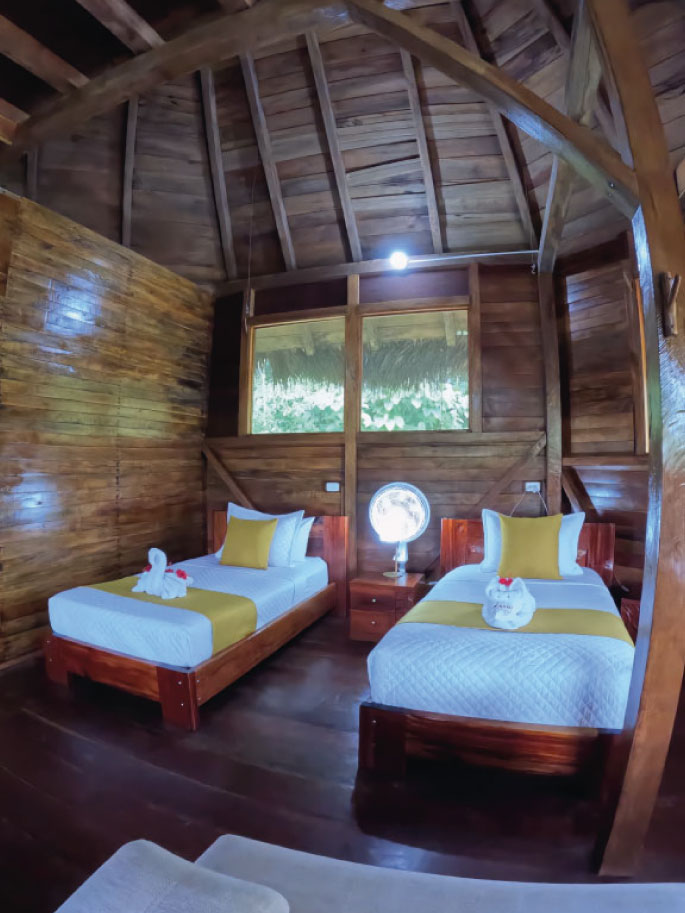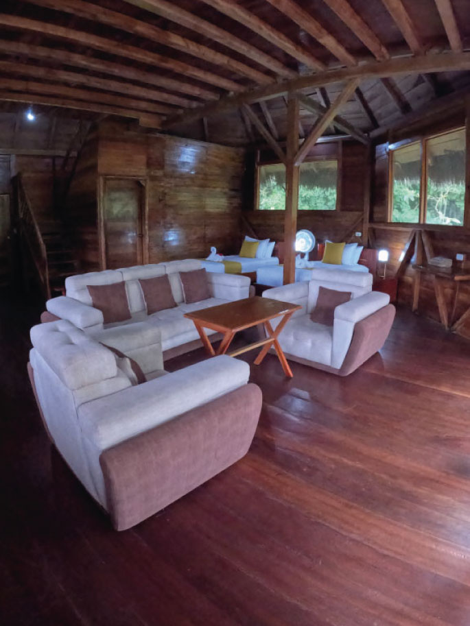 Strategically located in front of the lagoon, this space prioritises family comfort with a balcony, two full bathrooms, a living room, four beds on the lower floor, and a king-size bed, balcony, and private bathroom on the upper floor.